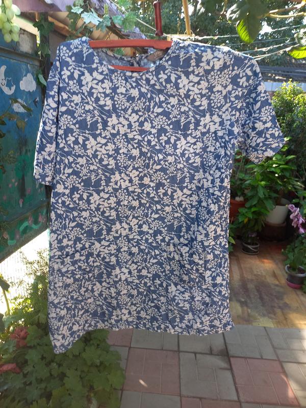 хорошего качества джиновое платье, симпатичное. короткий рукав, свободный крой. кормашки.размер в см на фото.