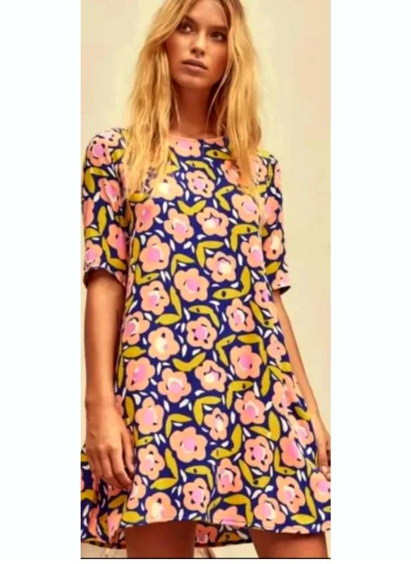 Тоненькое платье свободного кроя, на размер 44-46. Длина 76, ПОГ 46, ПОБ 60, рукав 27 см