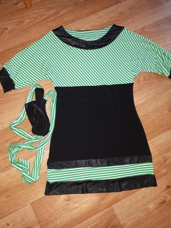 Розмір 46-48. Тягнеться. Заміри на фото. Є дефект-останні 2 фото,в очі не кидається. Позаду, знизу на чорній тканині. Невеликий слід від праски🙈Не питайте як, сама не пам'ятаю☺ Віддаю дешево, можливо для дому. Пояс в комплекті