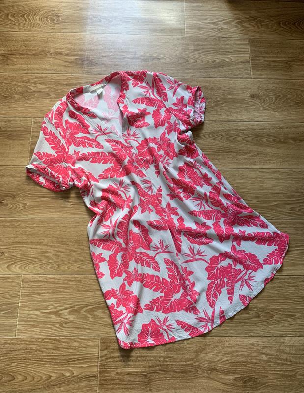 Ідеальний стан,актуальний принт,віскоза Довжина по спинці 88 Рукав від плеча 18 Пог 50 трохи тягнеться Пот 53 Поб 56