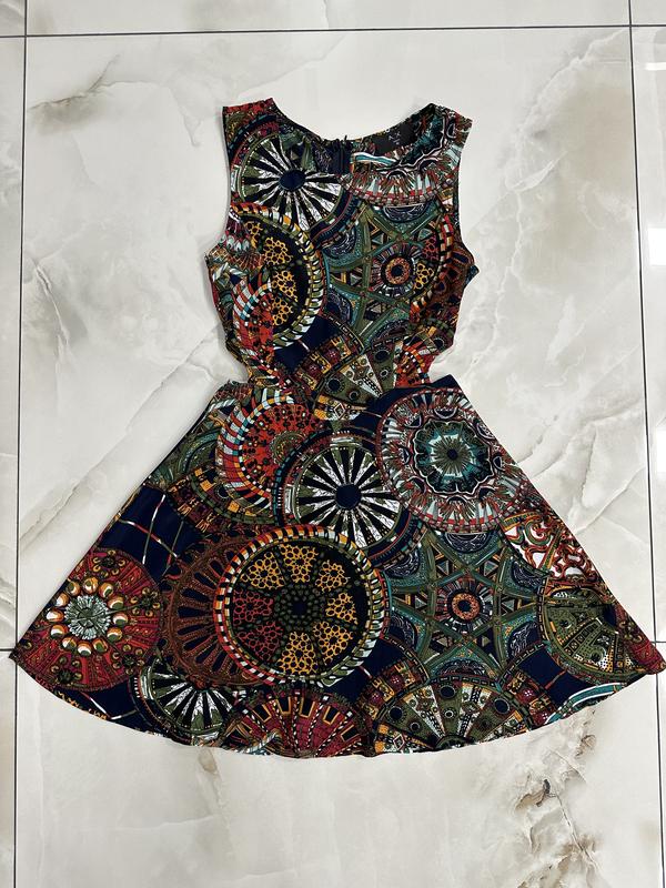 Очень красивое платье в идеальном состоянии. По бокам красивые вырезы на талии. Размер указан 10, подойдет на хс. Замеры: длина 83см, пог 40см, пот 30см, поб свободно.