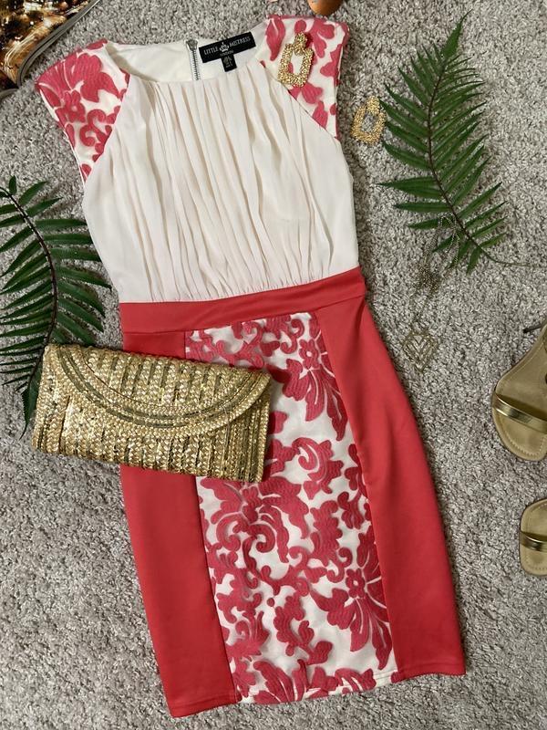 Для более точного определения, замеры, сравнивайте с измерениями подобной вещи, а не со своими объемами. Вечернее коктейльное миди платье. Ткань плотная эластичный трикотаж, тянется. Лиф из драпированного шифона. Вставки из органзы с кружевной вышивкой. Есть подплечники. Застегивается сзади на молнию. Цвет кремовый, коралловый-розовый. Состояние: идеальный. Эффекты: нет. Размер на бирке: 6\34 рдинаторы изделия измеряются в полуобхвате, а не от шва до шва!ook Замеры изделия: Плечи 40см. Высота проймы 18см. полуобхват груди 44см., полу охват талии 33см, полуобхват бедер 43см, полуобхват низ 43см, длина от плеча 88см. длина от плеча до талии 33см. длина по спине 88см. Состав ткани: 100% полиэстер. Страна производитель: Китай. Бренд: Little Mistress. Оплата и доставка: Оплата на картку монобанк. Брожение на оплату только 24г. При изменениях цель покупать обязательно сообщайте! Доставка: На время введения военного состояния уточняйте или возможна доставка до Вашего пункта. Актуальные новости можно уточнить на сайте перевозчика и по номеру телефона контакт-центров. Не забудьте ПОДПИСАСТЬ, чтобы быть в курсах всех новинок и распродажей!
