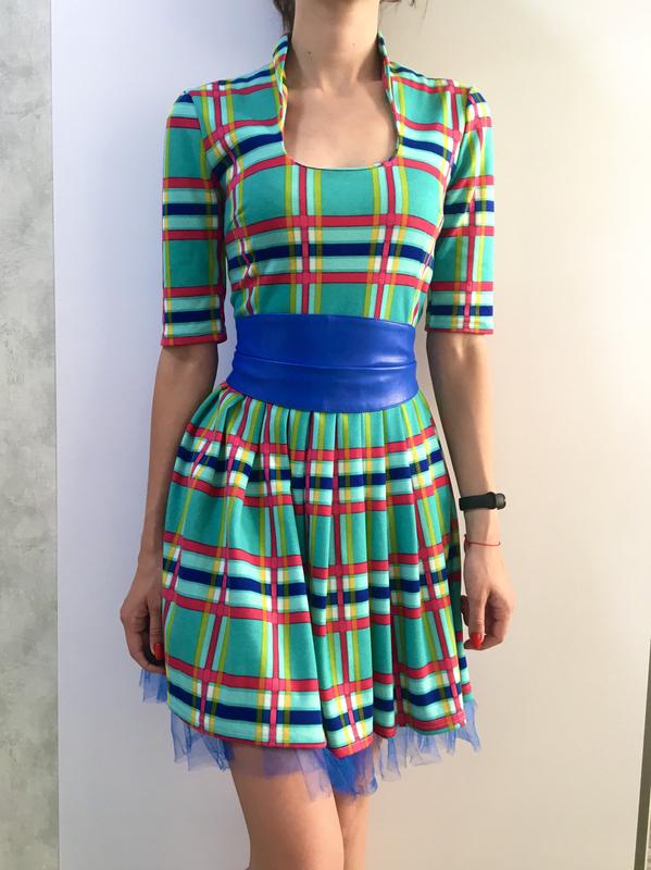 Яркое женское платье в клетку