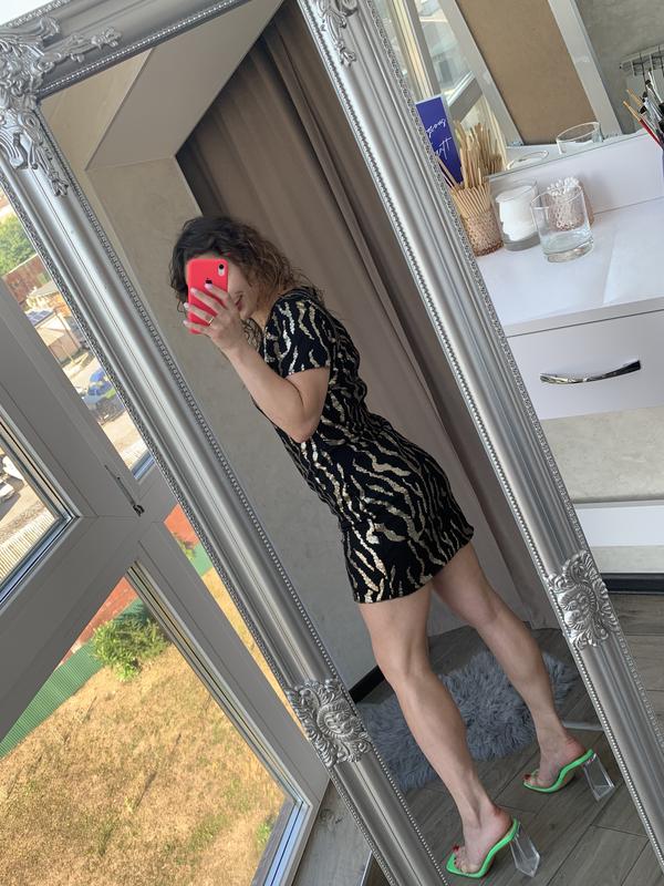 платье Vero Moda, черное с золотыми пайетками тигрового принта, размер м, подойдет на сос и на м