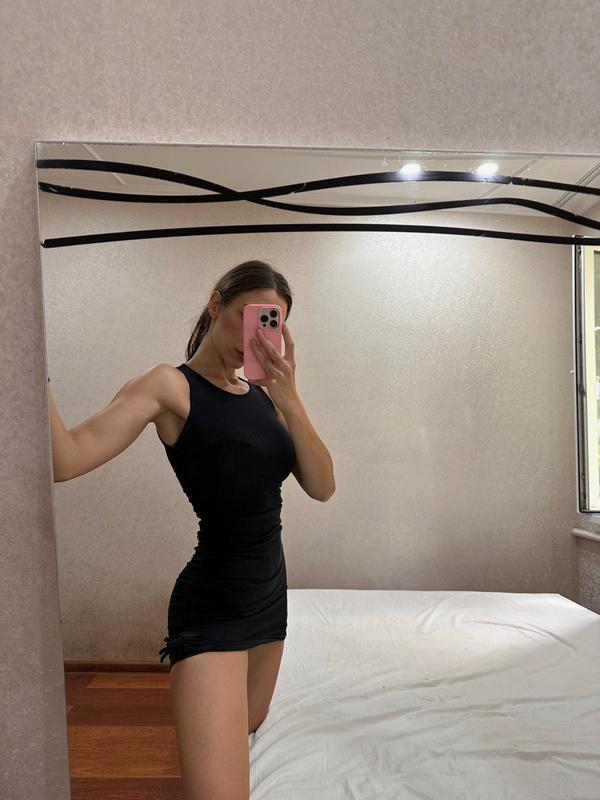 Мини в рубчик Shein🖤 По наборке на 9 лет, по факту хс/с/м, очень эластичная, длина регулируется затяжками👌 Как будто немного толченый цвет