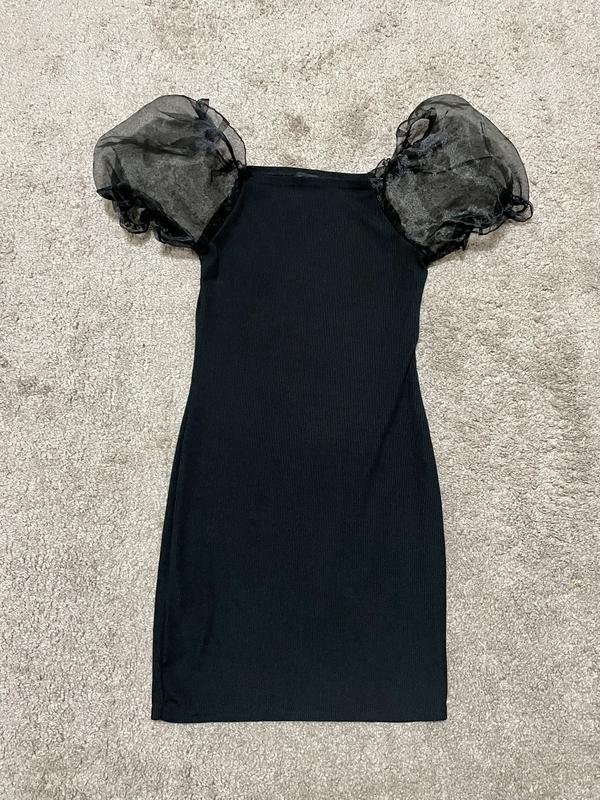 Платье в рубчик с классными рукавчиками В рубчик🖤 Состояние новой Размер указан 16-ти по факту на М будет супер 😍