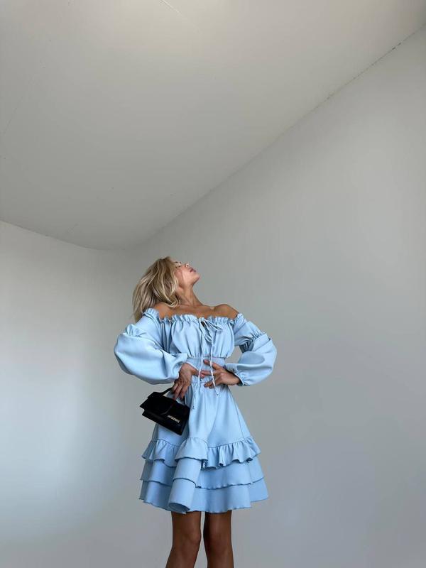Платье в стиле мини с воланами❤️идеально подчеркнет вашу женственность и нежность,шнуровка по спинке сделает более утонченной вашу талию✨ Модель: 216/14 Размер: S-M; M-L Тканина: креп костюмка Цвет: черный; малина; голубой; пудра ТОЛЬКО ПОЛНАЯ ОПЛАТА ✅