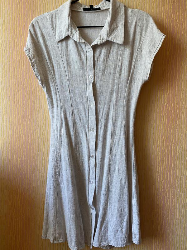Летнее платье, лен в составе, размер М. Замеры: длина 88см, ПОТ 35см, ПОГ 40 см, бежевое свободно