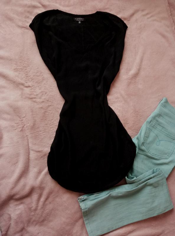 Супер легеньке плаття-туніка насиченого чорного кольору, прямого крою. По бокам є невеличкі вирізи (фото додаю) 100% віскоза. За детальною інформацію звертайтесь