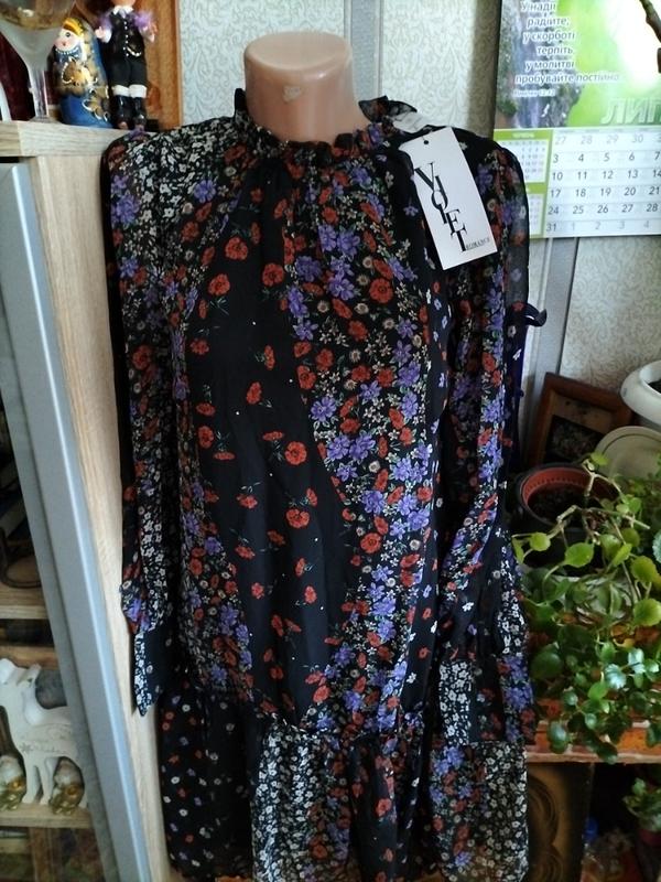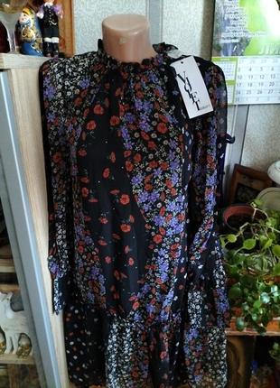 платье с заниженной талией, на подкладке, состояние новое, ткань полиэстер, принт цветочный купон, рукав длинный, присборенный у плечей, Индия плечи38 пог46 поб54 длина 92