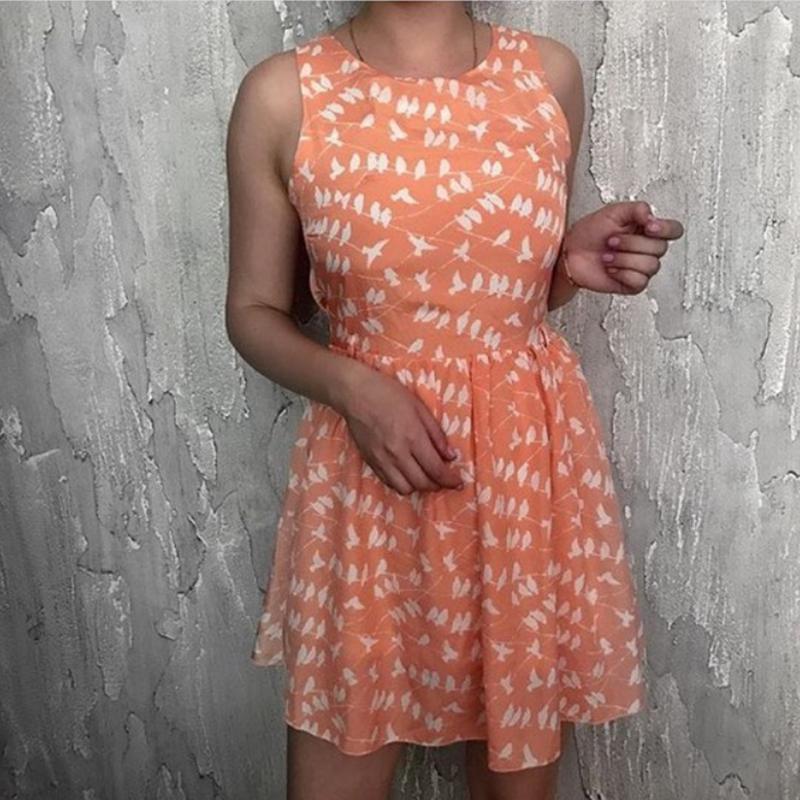 Легкое шифоновое платье в птички с красивой спинкой ,размер S. Доп фото и замеры скину в сообщения