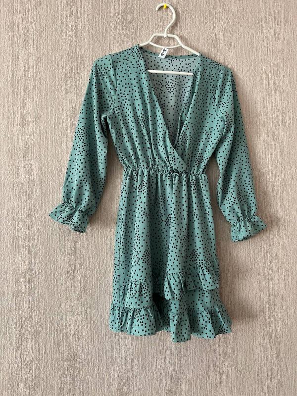 Платье бирюзового цвета в черный горох, в красивом состоянии