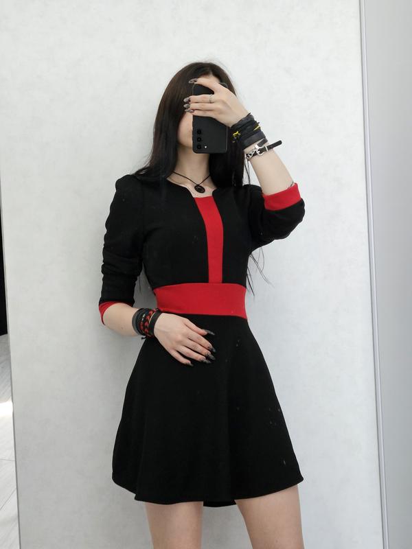 Платье до колена с красными актуальными вставками и длинным рукавом Все вопросы в дырэкт❔❕