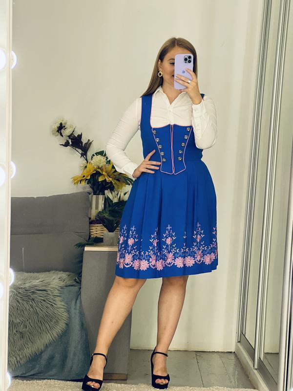 Для більш точного визначення, виміри, порівнюйте із вимірами подібної речі, а не зі своїми обсягами. Яскрава баварська сукня з вишивкою.. Тканина щільна, фактурно, тримає форму, не тягнеться. Крій ліф по фігурі. Застібається на блискавку та гачки Талія відрізна. Спідниця кльош в складку. Стан: ідеальний. Дефекти: ні. Розмір на бирці: 42 (Виміри виробу вимірюються у напівобхваті, а не від шва до шва!) Виміри виробу: Плечі 36см., Висота пройми 25см., напівобхват грудей 46см., напівобхват талії 36см., напівобхват стегон 54см., напівобхват низ 95см., довжина по спині 90см. довжина від плеча 85см., довжина від плеча 96см., довжина від плеча до талії 41см.. Склад тканини: 100% бавовна, підкладка 100% поліестер. Країна виробник: -. Бренд: dirndl strasser trachten. Оплата і доставка: Оплата на картку монобанк. Бронювання на оплату тільки 24 г. При змінах наміру купувати обов'язково повідомляйте! Доставка: На час введення воєнного стану, уточнюйте, чи можлива доставка до Вашого пункту. Актуальні новини можна уточнити на сайті перевізника та за номером телефону контакт-центрів. Не забудьте ПІДПИСАТИСЯ, щоб бути в курсі всіх новинок та розпродажів!