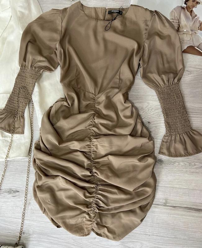 «МОКО» нереальное платье из пышными рукавами и сборкой по фигурке в напе. Нова Размер C-M Пог 39-48 Пот 35 Поб 46-49