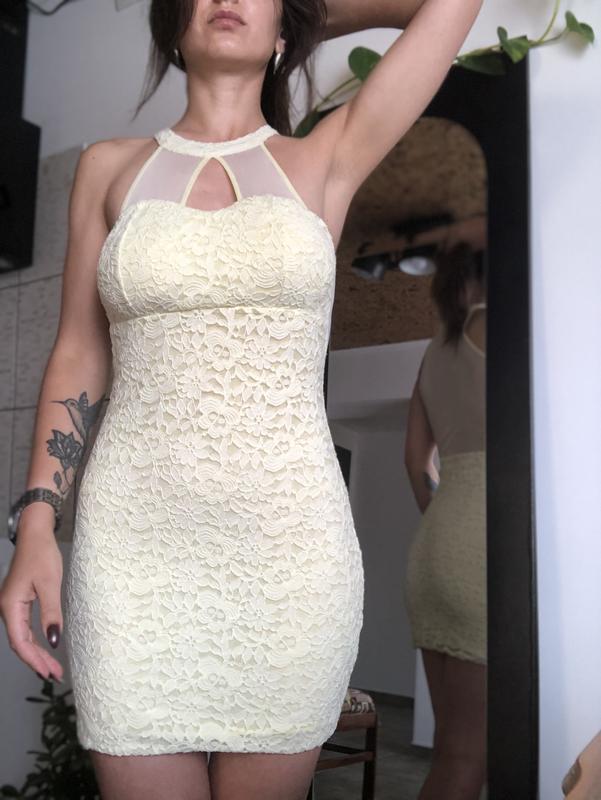 Нежнейшего желтого цвета,размер хс-С,на невысокую девушку(рост на фото 160 см), более длинные чашечки позволяют носить платье без бюстика на фото видно, сохраняют красиво, на чашку В-С, станудедеальный,без нюансов