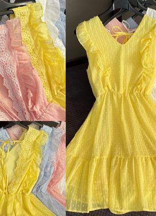 Sale‼️Цена 550грн🔥🔥🔥 Романтические платья, очень красивая спинка🤩🤩🤩. На подкладке❤️ Люкс качество👌 Цвета: пудра, желтый, белый, голубой. Размеры С, М С: ПОГ 46, талия на резинке, в бедрах свободная, длина 92см М: ПОГ 50, длина 93 см. Коттили дорого!