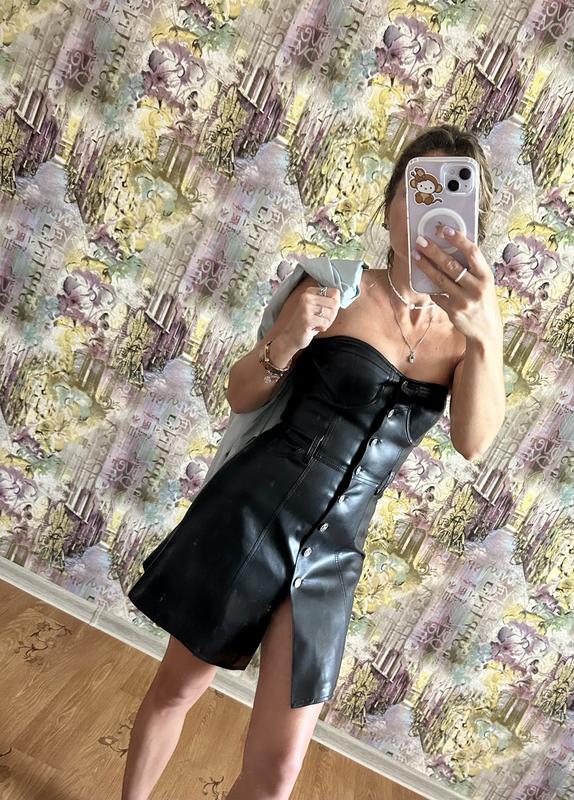 Ефектний сарафан із якісної еко-шкіри, тканина плотна, трохи тягнеться! Цей сарафан можна обіграти у різних варіантах! А вдягати як влітку, так і взимку! Дефектів немає ніяких- вдягала на фотосесію! Нова річ! Всі заміри на фото) підійде на ОТ до 66 см, на ОГ до 87, а на фото вдягнутий на зріст 157 см Відправка Укрпоштою чи новою поштою після оплати або передоплати 200 грн.