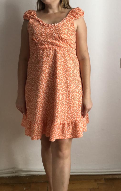 Новое платье оранжевого цвета, пишет размер л, но идет на см