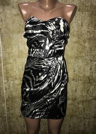 Платье -бюстье,шёлковое платье,атласное мини платье,принт зебра