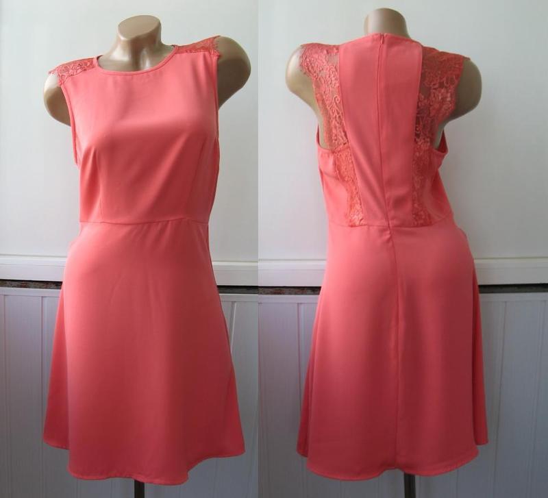 У відмінному стані (без вад). Колір: рожевий. Розмір M. Ширина під руками 43 см, у талії 36 см, стегнах 53 см, довжина сукні від плеча по центру 89 см, з боків 94 см. Склад: 100% поліестр (шифон – не просвічується); гіпюр – 100% нейлон. Одягнено на манекен розміру S з параметрами 85-60-92 см.