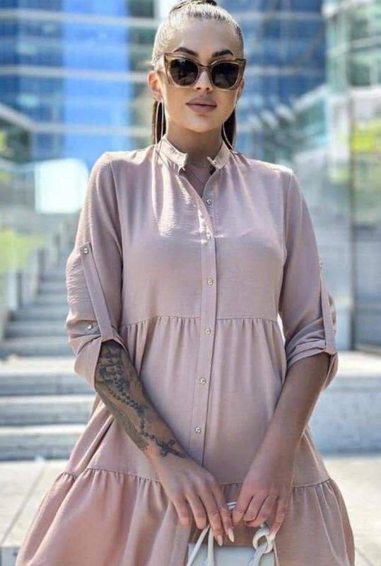 Літня вільна жіноча сукня на гудзиках із тканини американський креп-жатка з рукавом на гудзику.Не просвічується . Довжина сукні 83-84 см. Купила для себе, але на мій жаль не підійшов розмір (