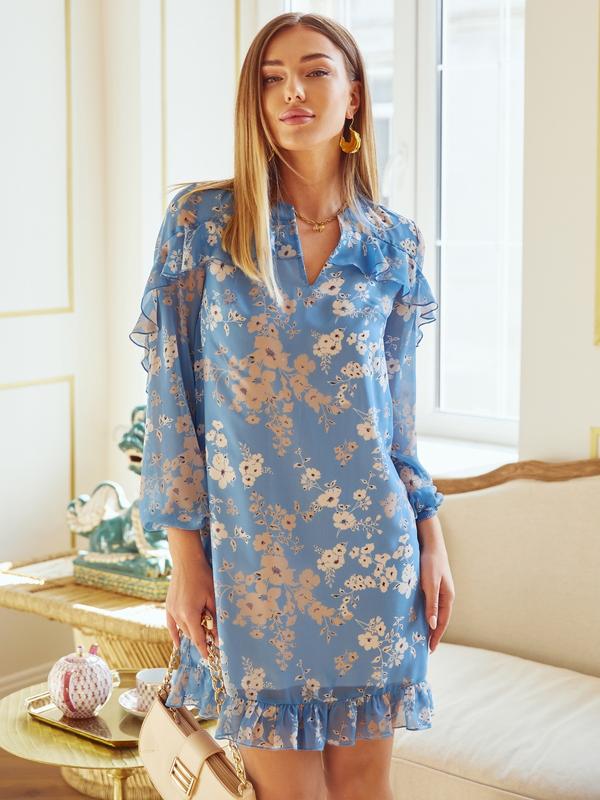💙Шифоновое платье-трапеция в цветочный принт с рюшами на кокетке, рукавах и по низу изделия. Предусмотрена хлопковая подкладка. ✔длина изделия – 93,5 см ✔длина рукава (от плечевого шва) – 59 см. 🧵Состав: 100% полиэстер 🧵Состав подкладки: 100% хлопок 🌈Цвет: голубой 🧵Материал: Шифон ✔Размер 44,46,48,50 💳Цена:1450грн Арт162316 ‼️Для заказа и детальной информации ndем в дырэкт📩, или комментарии ⤵️