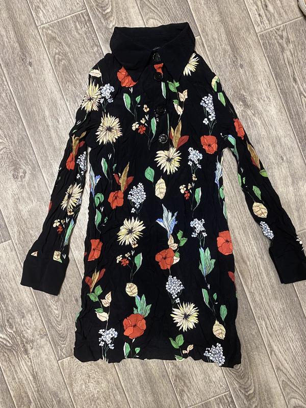 Платье с воротником из вискозы в цветочный принт