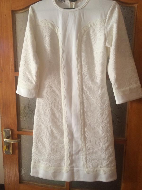 Плаття молочного кольору, гарно дивиться,рукав в 3/4, оброблене дорогим гіпюром