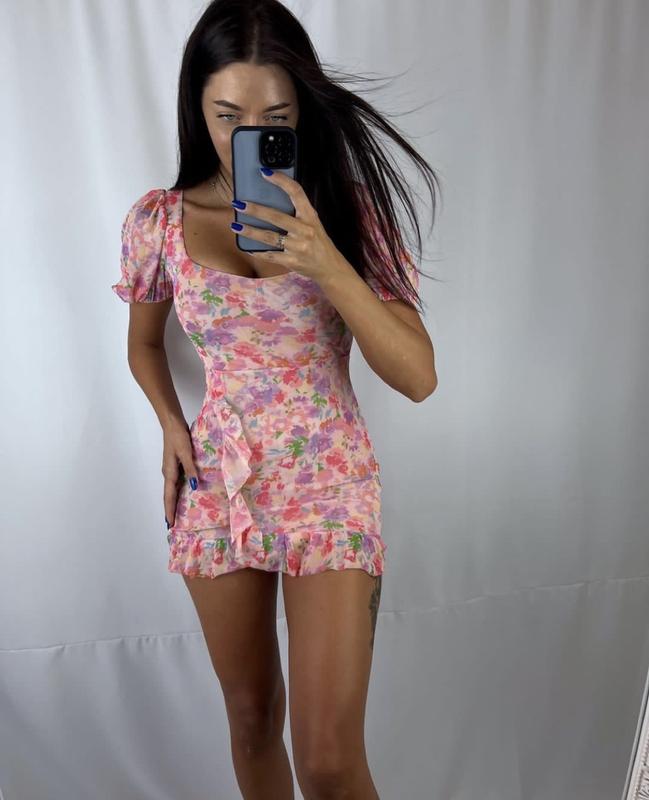 Короткое шифоновое платье с внутренней подкладкой