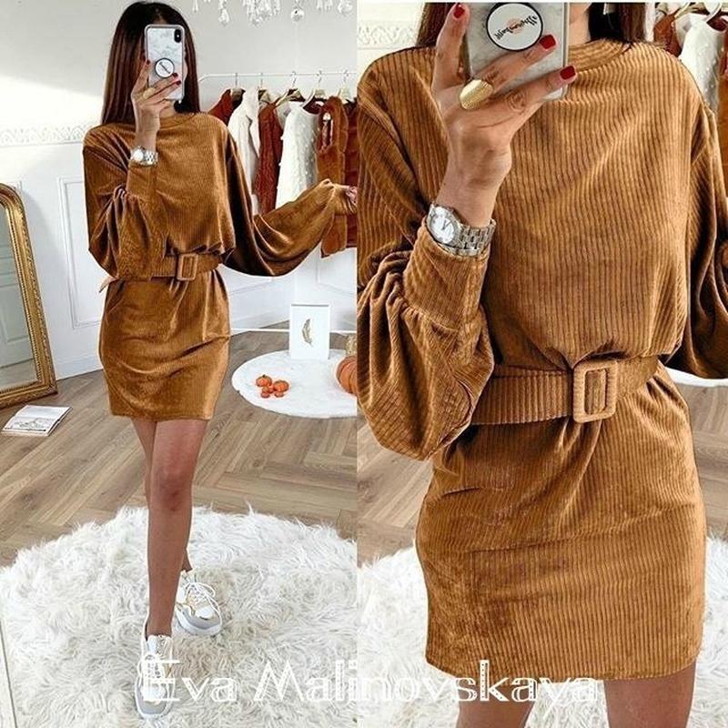 Платье. Пряжка на поясе обтянута кожей в цвет платья ✔Размеры - 42-46 ✔Ткань - Вельвет Цвет: рыжий.