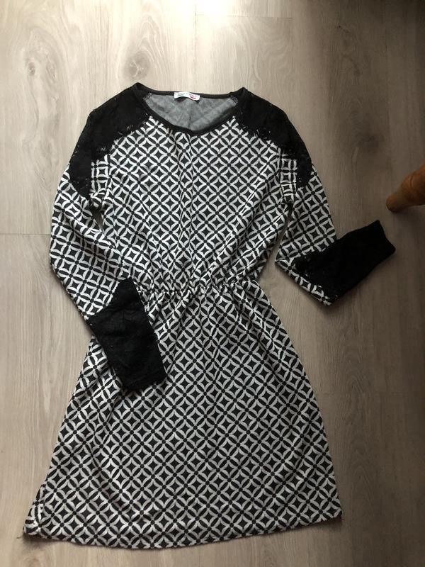 Платье щи кружевными вставками на плечах и по рукавчикам. В поясе резинка. На размер 36, 38. Ориентируйтесь по замерам. Куплено в Польше. 64 см - длина рукава от горловины. 54 см длина рукава от плеча 82 см- длина от плеча 28 см- ширина в поясе по резинке; тянется хорошо 56 см-ширина снизу