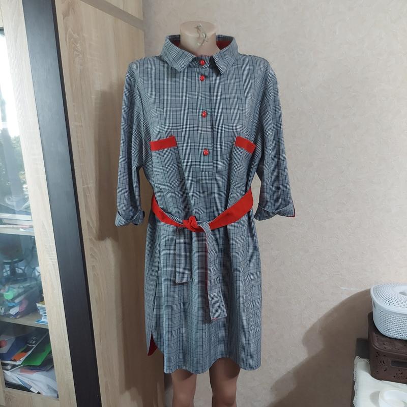 Платье в клетку, прямого кроя, в комплекте есть поясок. Идеально подойдет на 52размер.