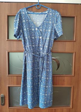 Платье практичное ежедневное, длина 96 см, пог 52 см, талия на резиночке под поясок. Тканина тянеться.