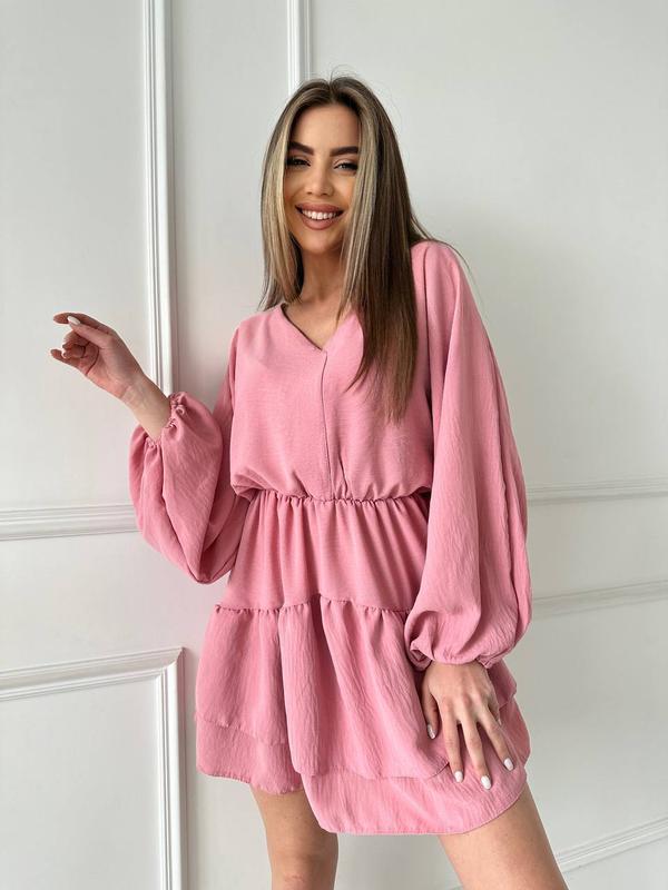 Платье мини талия на резинке v образный вырез рукав ,,летучая мышь,, пышный длинный фонари...