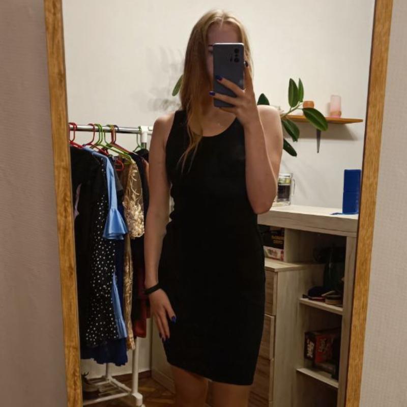 черное платье в рубчик. тянется немножко, удобное. состояние красиво