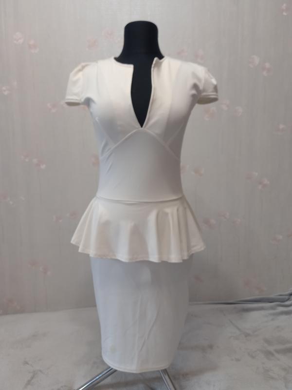 Платье цвет между белым и молоком с баской.Тягнется.Замеры дамас при необходимости.