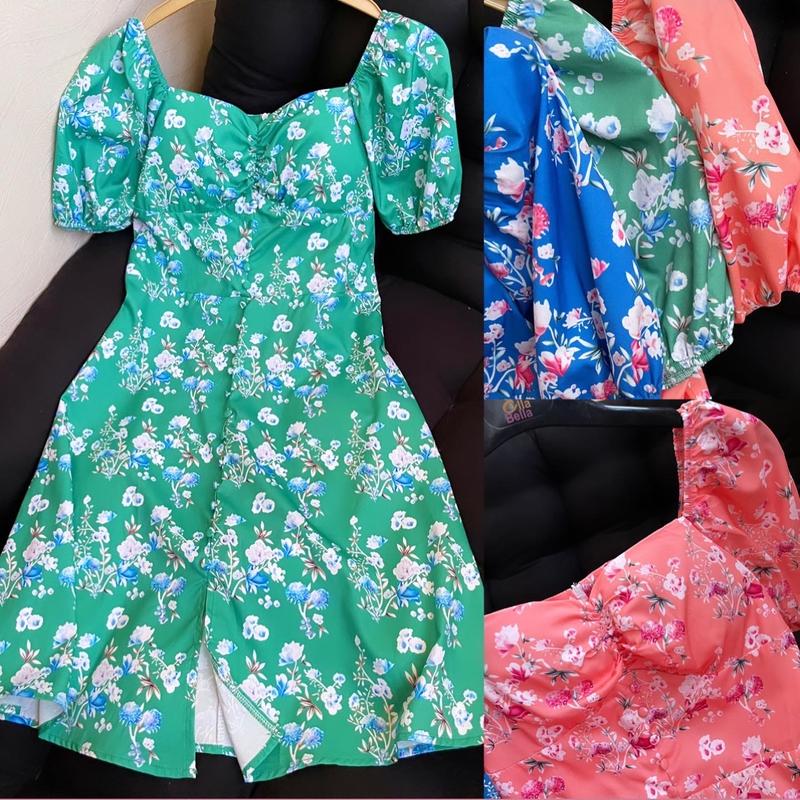 Трендовые молодежные платья с пуговицами и разрезом спереди. Рукави фонарик💙 Есть чашечки❤️ Очень классное качество👍 Три цвета🧡💙💚 Размеры м, л М: пог 43, Пот 36, длина 86 Л: пог 45, Пот 38, длина 87 Ткань немного тянется.