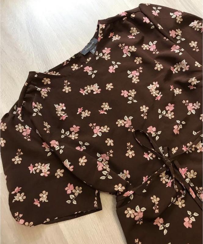 сукня у квітковий принт на зав'язці з красивими рукавчиками Primark Розмір 14(42), М/маленька L, в талії регулюється Стан нового, матеріал: 100% поліестер • Заміри: Довжина від плеча 87 см, Півохват грудей 51 см, Півохват в талії 44 см, Рукав від плеча 22 см