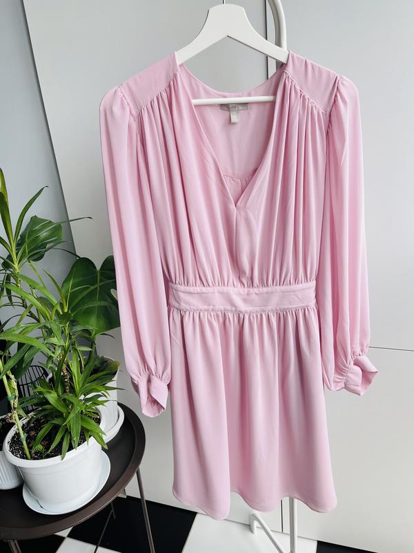 Платье женское бледно розовое нежность с длинным рукавом от H&M, ▫️имеет V вырез, 🎀сзади на талии завязывается, 👍в идеальном состоянии, без каких-либо нюансов, 👗имеет подкладку, 📐размер по набору L, можна і на М, ориентируйтесь на замеры: -пог 50 см -пот 50 см (регулируется завязками на поясе) -поб 70+см -плечи 44 см -длина рукава от плеча 58 см -полуширина манжета 12 см -глубина проймы рукава 26 см -длина 92 см 🔖100% полиэстер, 📦Отправляю перевозчиками: укрошта или новая почта, безопасной или по полной подписке на карту 📸фото на теле - не делайте 🔄возврат или обмен — нет