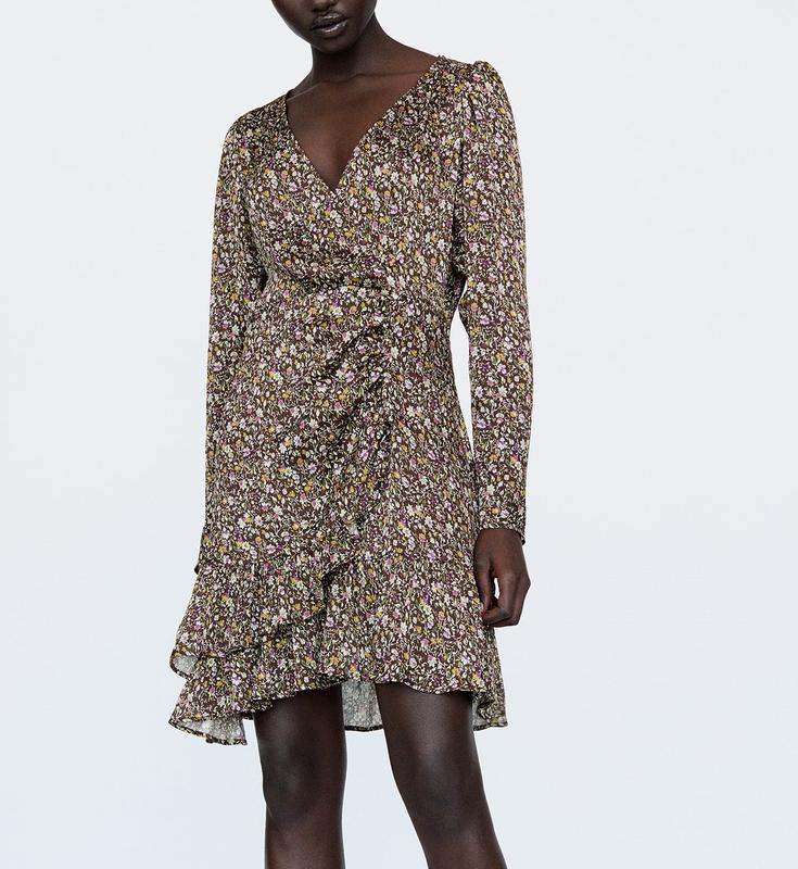 Стильне плаття квітковий принт Zara XS ПОГ 40-43 см, довжина 84 см, рукав 60 см, ПОТ 30-35 см, ПОБ 42-48 см трішки підшивався по шву рукав, останнє фото, цього взагалі непомітно