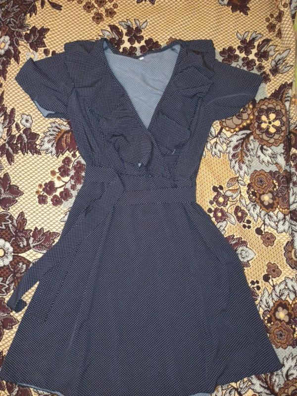 Новое платье в мелкий горошек, бирки нет Материал воздушный, поясок в комплекте, размер 42, замеры на фото. сделаю дополнительные фото и замеры.