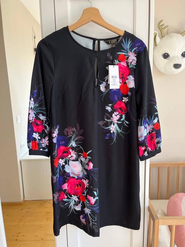 Платье черное с яркими цветами Нова, сток Имеет дефект - заточка, есть на фото Замеры сделать