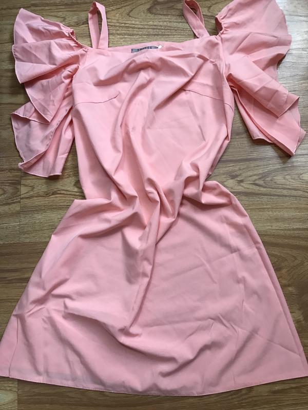 Новое платье Dressa на брителях с волнистым коротким рукавом, цвет персиковый, очень красивый привив
