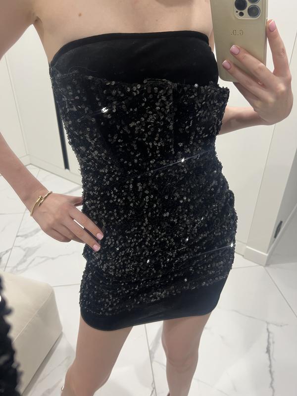 сукня pretty little thing, нова, чорна з паетками. Розмір eu 36, uk10, usa 6