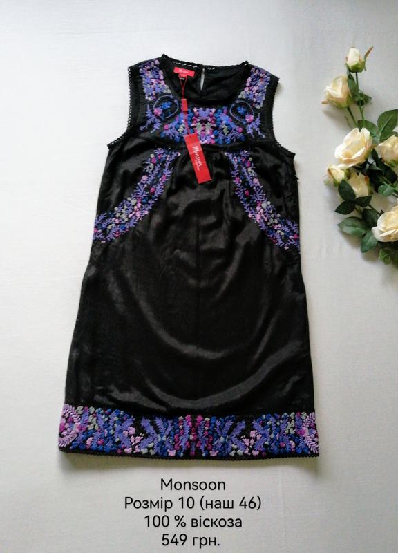 Платье мини вышиванка от Monsoon. Размер 10 (наш 46). Состав: верх 100% вискоза, подкладка 100% хлопок. Замеры : длина по спинке 90 см, ПОГ 44 см, ПОТ 48 см, ПОБ 50 см, плечо 8 см. Состояние новое с бирками.