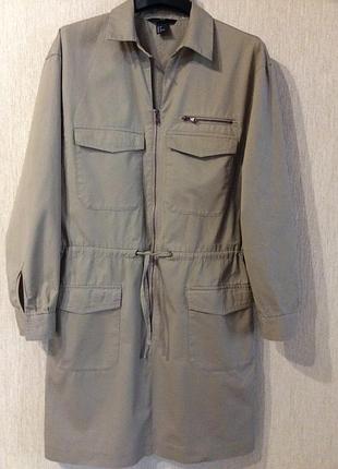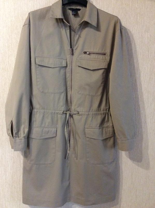 Состояние новой вещи. Стильное платье в стиле "сафари". Красивый цвет между беж и хаки, камера нажаль не передает. Ткань 100% хлопок - плащевка, средней плотности, диагональное переплетение нитей, как в джинсе. Накладные карманы на груди и внизу. На спинке по талии резинка, по переду есть пояски в кулиске. Красивые замочки. Под кеды, кроссовки и ботинки тоже будет супер. На бирке размер 36 евр. Замеры - длина по центру спинки 89, ПОБ 50 заходите на мою страницу, подписывайтесь, предлагая качественные интересные вещи за приемлемую цену.