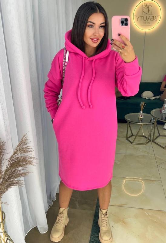 Топова Новинка 🤩 Мод :576 Теплое платье С капюшоном! Стильне, Комфортне, Мега Круте! В топовых оттенках 💓 Размеры 42-46,48-52 Ткань Теплая трехнитка на Флисе люкс 🔥 кольори -,Мокко,Черный,Беж,Трава,Малина, Электрик,бузок 🫶 💥💥Цена 525 грн. 💥💥 син826