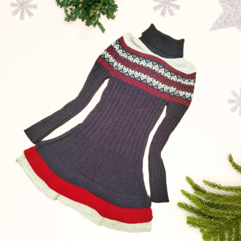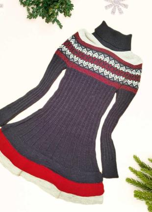 Зимнее, теплое вязанное платье. Внизу три разноцветные оборки. Мягенькое, уютное, хорошо тянется. Состояние новой вещи, без нюансов пог 38-45 пот 30-45 вязка резинкой поб свободно длина 87 рукав 68 высота горла 19 без подворота