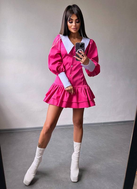 Стильное коттоновое платье с рюшами на пуговицах со шнуровкой, платье мини с рюшами
